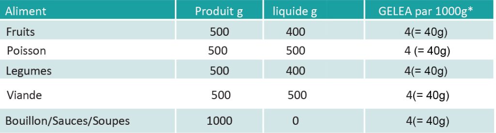 Mixer finement la viande ou les légumes et ajouter GELEA hot selon les instructions. Porter à