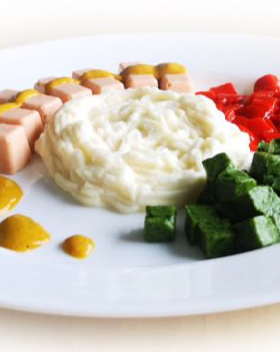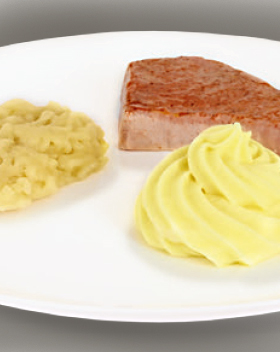 mit Süßkartoffelpüree und Curry-Ingwersauce