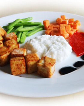 mit Basmatireis, Karottengemüse und Kirschtomaten