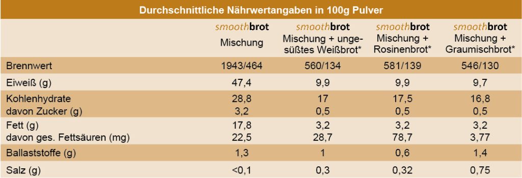 450g grob zerkleinertes Brot für ca. 1 Stunde in 1050g Wasser einweichen. Anschließend die Gesamtmasse ca. 30 Sekunden pürieren (vorzugsweise RobotCoupe Blixer o.ä.) 300g der smoothbrot Mischung unterheben.